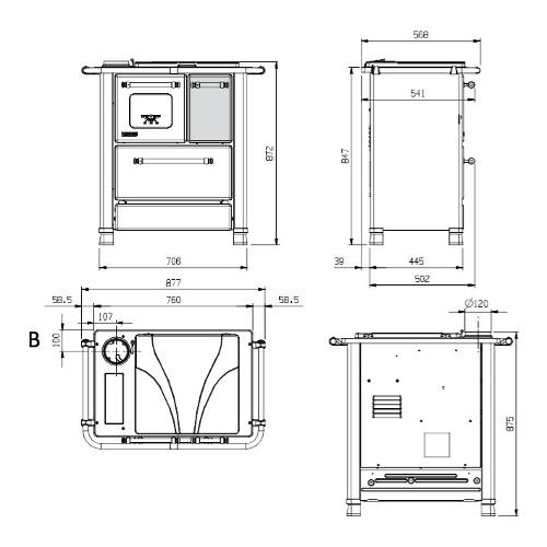 Cucina legna 5kW ROMANTICA 3.5 Sx Marrone sfumato (87,7x56,8x85,6cm)