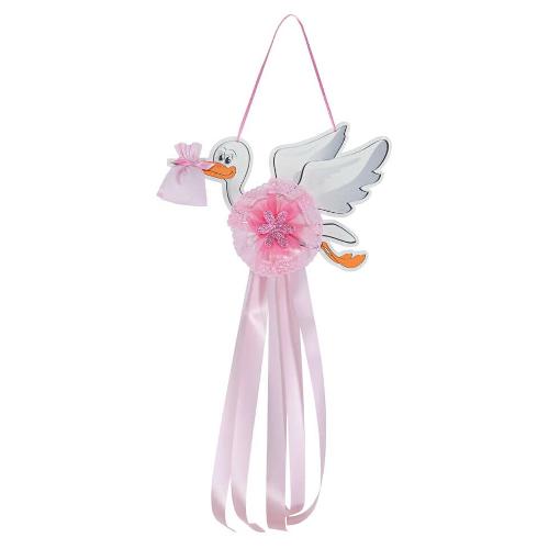 Cicogna azzurra in pvc stampato, tulle, nastro tht idrorepellente, nastro in poliestere. Altezza 80 cm larghezza 34 cm profondità 1 cm nastri compresi. Non teme le intemperie. Prodotto artigianale che potrebbe presentare differenze dalla foto perchè fatto manualmente
