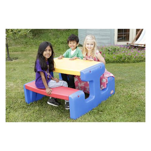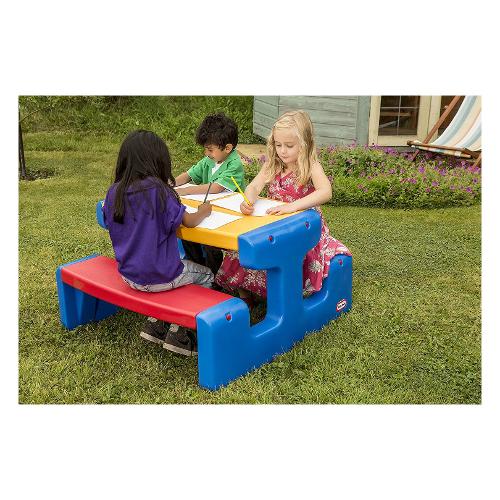 Questo grande tavolo da pic nic ha un piano monoblocco che lo rende un perfetto tavolo da attività indoor/outdoor.