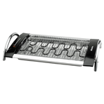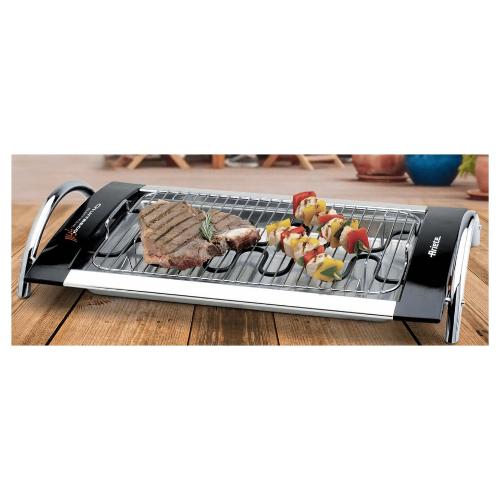 Barbecue elettrico dotato di una doppia griglia per girare gli alimenti con facilità, vassoio in alluminio nel quale viene versata l'acqua per ridurre la formazione del fumo, potenza 2000 Watt, vassoio raccogli grassi removibile, interruttore on/off, regolazione della temperatura, griglia in acciaio cromato.
