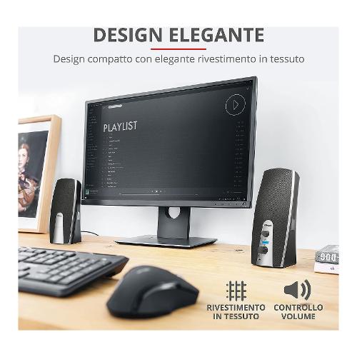 Set di altoparlanti stereo compatti con potenza di 5 Watt RMS (potenza di picco di 10 Watt)