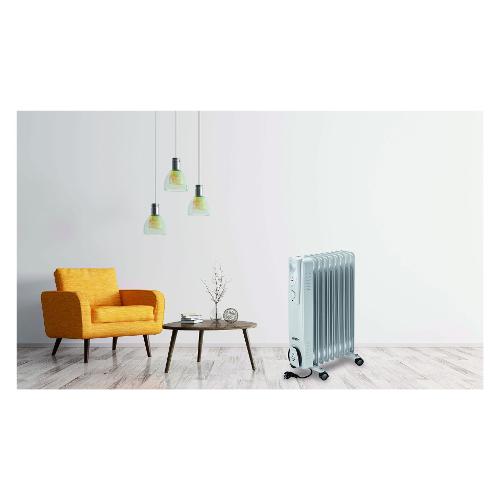 Elettro radiatore elettrico con olio minerale a 9 elementi riscaldanti. livelli di potenza (800W/1200W/2000W). Dotato di maniglia frontale anti-ustione e supporto avvolgi-cavo.