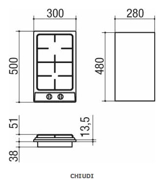 Piano cottura gas 2 zone 1PVG2 Vega Inox (30cm)