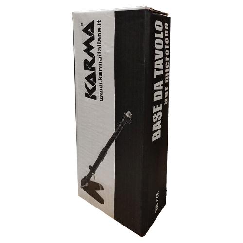Supporto microfonico da tavolo con basamento in ghisa e possibilità di allungarsi da 30 a 44cm. Un anello passacavo permette di mantenerlo aderente all'asta. Sulla sommità è presente un filetto per pinza microfonica. L'inclinazione avviene tramite una pratica leva posta alla base dell'asta.