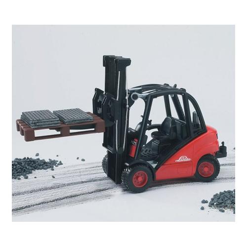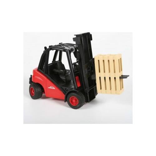 Riproduzione fedele in scala 1:16. Il meccanismo dell'elevatore è perfettamente funzionante, l'inclinazione del montante di sollevamento può essere regolata così come la spaziatura delle forche. Ol muletto è naturalmente dotato di sterzo. La confezione include un pallet.