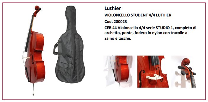 CEB 44 Violoncello 4/4 serie STUDIO 1, completo di archetto, ponte, fodero in nylon con tracolle a zaino e tasche.
