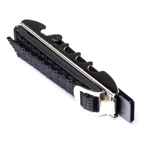 Questo capotasto nichelato è leggero e semplice da usare, dotato di un cinturino regolabile e di un elegante profilo ergonomico che non graffia il manico della chitarra.