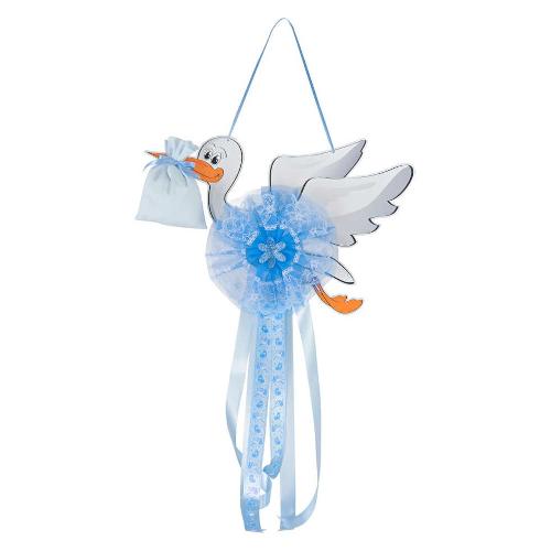 Fiocco nascita Cicogna intermedia pvc poliestere (50x80cm) Azzurro CI IA