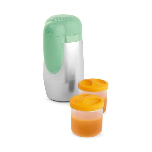 Portabiberon e vivande termico.In Acciaio inossidabile, si possono portare fuori casa i biberon della linea chicco naturalfeeling o la pappa del bambino, mantenendone la temperatura per 5 ore. Massima praticità anche fuori casa: