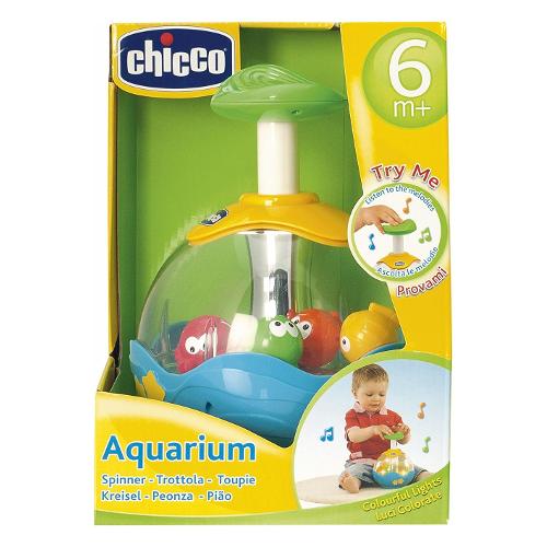 La trottola acquario di chicco è la simpatica trottola elettronica ispirata al mondo marino: facendola ruotare i coloratissimi pesciolini al suo interno nuotano vorticosamente con effetti musicali e luminosi divertenti.Contribuisce A sviluppare la coordinazione e a capire le relazioni causa-effetto.
