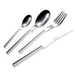 Sky è una posata in acciaio sul cui manico vengono applicate le 2 guancette colorate che fungono da impugnatura. È un modello di posata dalle proporzioni e forme in contrapposizione: impugnatura sottile e squadrata e rotondità delle coppe dei cucchiai e delle tazze delle forchette. Design contemporaneo per questa posata con manici colorati che creano particolari effetti geometrici di trasparenze. Set 24 pezzi comprende, 6 cucchiai, 6 forchette, 6 coltelli tavola e 6 cucchiaini caffè