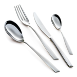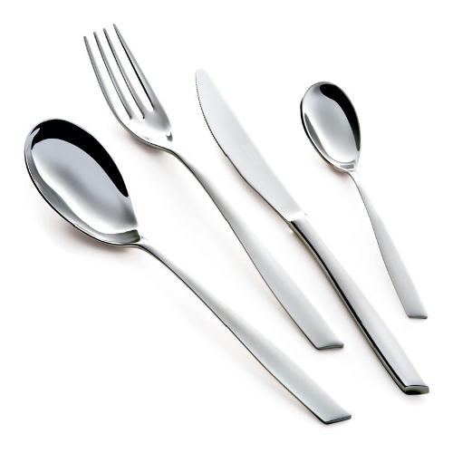 Set 24 pezzi comprende, 6 cucchiai, 6 forchette, 6 coltelli tavola e 6 cucchiaini caffè