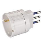 In tecnopolimero alta resistenza meccanica e termica. Spine e prese con spinotti e alveoli attivi protetti da contatti diretti accidentatli e/o volontari