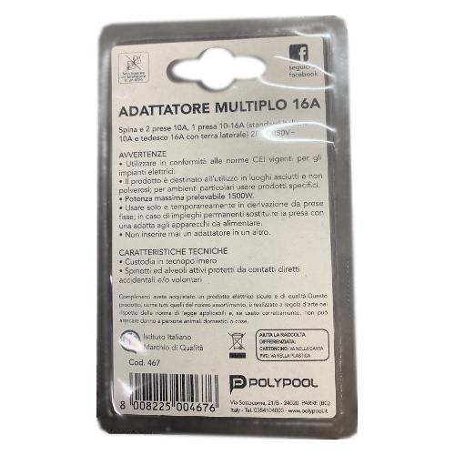 2 prese 2P+T 10A (std italiano); 1 presa 2P+T (std italiano 10A e tedesco 16A)