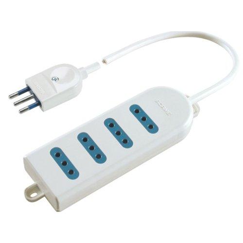 Prese multiple 250v - da tavolo o da parete, con cavo 3x0,75mm² e spina 10a 2p+t - presa quadrupla 10a 2p+t, 1,5m cavo con spina 10a 2p+t, cavo flessibileh05vv-f sezione 3x0,75mm², custodia in tecnopolimero ad alta resistenzameccanica e termica
