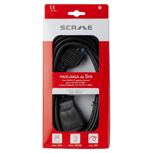 Prolunga elettrica (5m) H05VV-F 3x1 mmq (16A 2P+T) Nero PP0385 1R