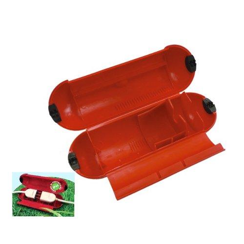 Guscio per la protezione della giunzione spina – presa. Dotato di dispositivo di blocco che evita il disinserimento accidentale di spina e presa. Completo di gancio per appendere il guscio. Ideale per proteggere il collegamento degli apparecchi per la cura del giardino.