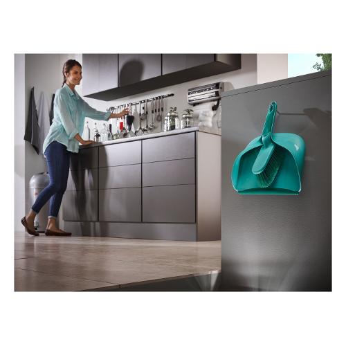 È il momento di dire basta alla lanuggine della polvere e ai pezzetti di sporco che si disperdono dalla paletta già lungo il tragitto fino alla pattumiera: il set paletta + scopino di leifheit dispone di una paletta dalle dimensioni maggiorate con una camera per lo sporco chiusa su tre lati con cui è possibile trasportare anche le particelle di polvere finissime. Il maneggevole scopino dotato di estremità delle setole suddivise assicura risultati ottimali. Ogni singola setola dispone di innumerevoli ramificazioni finissime che aumentano le prestazioni dello scopino ed estraggono le particelle di polvere finissime anche dalle fessure più piccole. Dopo la pulizia, lo scopino si ripone con la sua impugnatura morbida ed ergonomica nella paletta. Una volta uniti si possono appendere consentendo di risparmiare spazio.