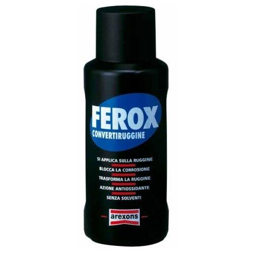 Ferox è un convertitore di ruggine a base di resine sintetiche disperse in acqua, reagisce Chimicamente con la ruggine trasformandola in un complesso stabile di colore nero resistente All’attacco degli agenti atmosferici e impermeabile all’umidità. Idoneo per applicazioni anche In ambienti chiusi e poco ventilati, è sovraverniciabile con tutti i tipi di vernici sia ad acqua Che al solvente. Reagisce con la ruggine e ne blocca i processi distruttivi.
