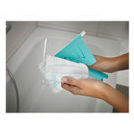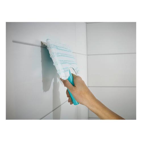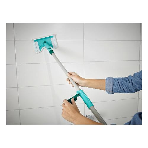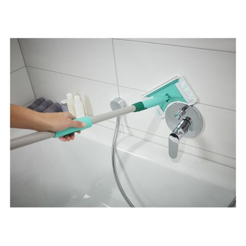Il panno per la pulizia di piastrelle e vasche flexi pad semplifica la pulizia di bagno e doccia come mai prima d'ora. Grazie alla sua enorme flessibilità e alla grande portata, flexi pad raggiunge anche gli angoli più lontani senza doversi sporgere sopra la vasca da bagno o nella doccia riportando dolori alla schiena. Grazie all'incavo tondo la superficie di pulizia di flexi pad si adatta con precisione alla forma della rubinetteria rimuovendo con poche passate le incrostazioni di sporco antiestetiche. Il suo snodo girevole a 360° rende l'articolo incredibilmente maneggevole. Segue senza difficoltà tutte le parti tondeggianti delle vasche, si adatta in modo abile alle rubinetterie e pulisce tutti gli angoli con cura. In presenza di punti difficilmente accessibili, scende in campo il manico telescopico che è possibile estrarre fino a raggiungere una lunghezza utile compresa tra 93 e 150 cm. Dopo la pulizia in umido si ruota flexi pad in modo semplice per far splendere le piastrelle e il box doccia con la lamina in gomma. Il rivestimento del panno per pulizia di piastrelle e vasche flexi pad è realizzato con il collaudato abbinamento di microfibra di leifheit. Le file di finissime setole leggermente sporgenti raggiungono le fughe più profonde rimuovendo anche lo sporco ostinato, come calcare e residui di sapone, senza sforzi. Il panno è largo 20 cm.
