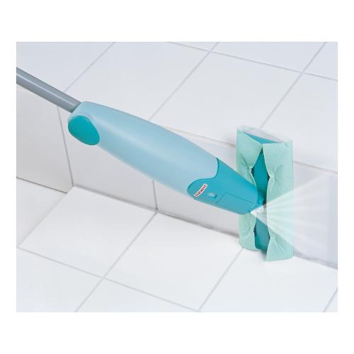 Spruzzare, pulire e il gioco è fatto. Senza secchi, senza panni per la pulizia, senza fatica. Tutto questo è garantito da pico spray di leifheit. Sul manico è presente un serbatoio che viene gestito in modo semplice dall'impugnatura. Azionando la leva in modo semplice, pico spray eroga un getto nebulizzato sotto pressione di acqua pulita o soluzione detergente. Pico spray può garantire circa 400 erogazioni con una ricarica del serbatoio. La sua agile testina pulisce anche punti difficilmente raggiungibili. Il panno micro-tech di alta qualità consente fino a 100 lavaggi.