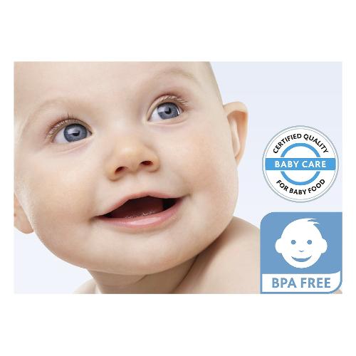 Contenitore ermetico con coperchio con guarnizione e chiusura a clip. 100% sicuro: certificato per gli alimenti dei neonati, senza bpa. Scala graduata integrata. Made in germany