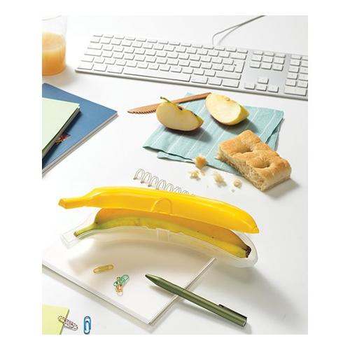 La speciale chiusura a scatto consente al salva banana di essere trasportato con sicurezza e di mantenere fresco e integro il contenuto