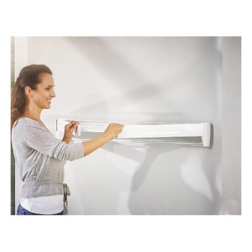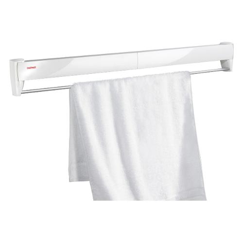 L'indispensabile zona di asciugatura per il bagno: una volta chiuso, il telegant plus 100 di leifheit è uno scaldasalviette piacevolmente elegante con una barra cromata. Dall'esterno, offre otto barre di asciugatura da 90 cm e quindi spazio per quasi un carico completo di lavatrice. Dopo una facile installazione, soddisfa i requisiti grazie alle sue barre asciuganti antiruggine ad alta capacità e lunga durata.