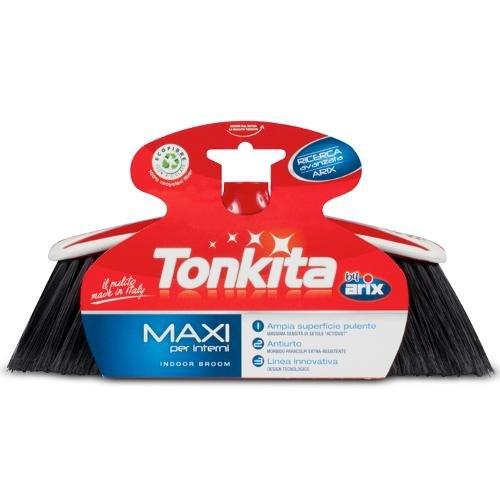 Maxi per interni è la scopa dal design tecnologico e bordo paracolpi, prodotta con materiali interamente riciclabili. Scopa con assicella e bordo paracolpi stampati in bi-iniezione, più compatti e resistenti, senza fessure e rilievi annida sporco. Le setole “actidust” realizzate in materiali 100% riciclati e riciclabili, raccolgono efficacemente la polvere sottile, capelli e briciole. Fitte e inclinate, le setole penetrano meglio le fughe dei pavimenti e raggiungono gli angoli difficili.