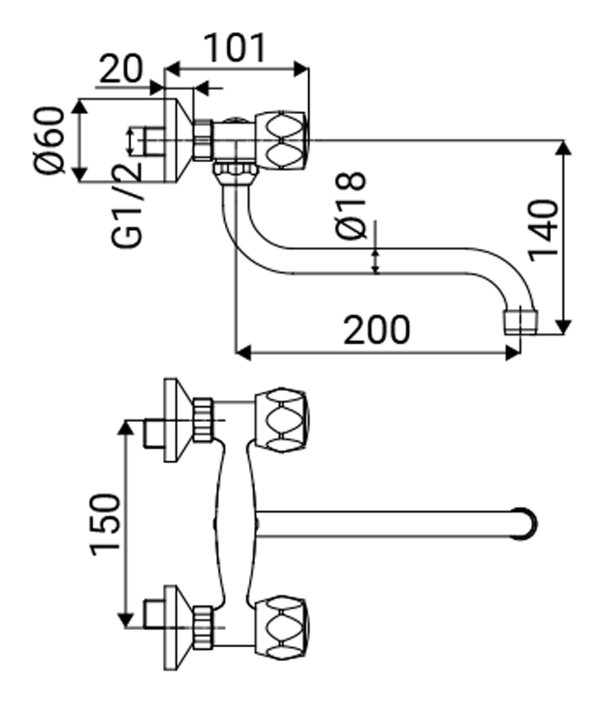 Rubinetto lavello doppio comando parete SCUDETTO Cromo lucido 03078