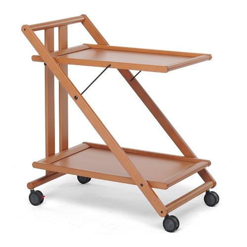 Il carrello in legno pieghevole Sprint di Foppapedretti è un comodo portavivande che, quando è chiuso, occupa pochissimo spazio: solo 11 centimetri! Ha due ampi vassoi portavivande e un particolare meccanismo a scatto che consente una facile apertura e chiusura. La solida struttura in legno massiccio di faggio verniciato si sposta facilmente grazie a ruote gommate piroettanti antigraffio