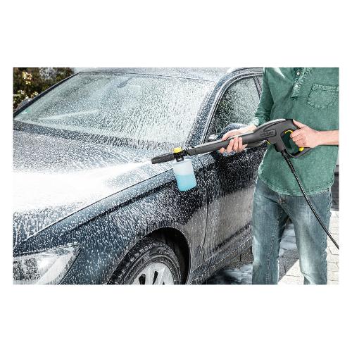 Il diffusore detergente disinfettante fj 6, compatibile con tutte le idropulitrici kärcher, permette di trasformare disinfettanti e detergenti in schiuma extra potente per una facile pulizia e disinfezione di tutte le superfici esterne. Ideale per veicoli, vialetti, mobili da giardino, facciate, scale, pareti, terrazze e cancellate. Basta fissare l'ugello alla pistola (al posto della lancia), versare al suo interno il detergente o il disinfettante e applicare la schiuma. La dose di detergente/disinfettante può essere facilmente regolata attraverso l'ugello (manopola gialla) e anche la potenza del getto può essere regolata secondo necessità. Non danneggia l’idropulitrice in quanto il liquido non passa attraverso la macchina. Capacità del contenitore ca. 0,6 litri.