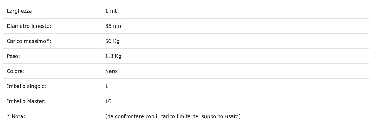 Barra in acciaio da 1 mt per supporti per luci. Sorregge fino a 8 PAR. Connettore a "T" con diametro interno da 35 mm.