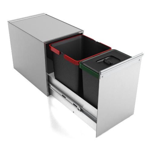 Estrazione totale frontale ad apertura manuale; ampio pianale superiore per appoggio oggetti vari. Telaio inox con guide metalliche a richiamo automatico, contenitori plastica