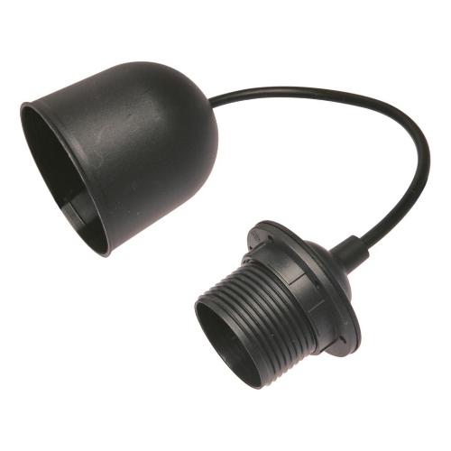 Punto luce da soffitto in materiale plastico con 80 cm di cavo H03VV-F sezione 2 x 0,75 mm² e portalampada E27 250 V. Completo di ghiera per il fissaggio al paralume. Isolato in classe II: non richiede il collegamento di messa a terra. Corrente nominale portalampada: 4 A. Potenza massima: 60 W