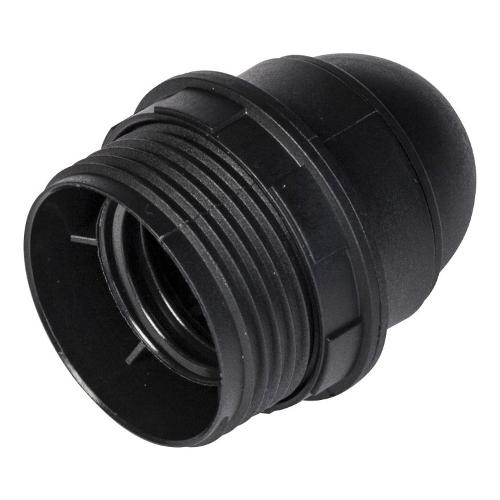 Portalampada in materiale plastico 250 V, attacco E27 con ghiera, corpo parzialmente filettato. Corrente nominale: 4 A. Massima temperatura d’esercizio: 180 °C. Morsetti a vite e contatti in ottone