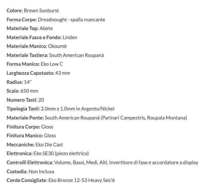 Scheda informativa del prodotto