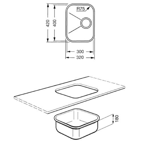 Lavello 1 vasca (32x42cm) ALBA Inox Spazzolato UM30