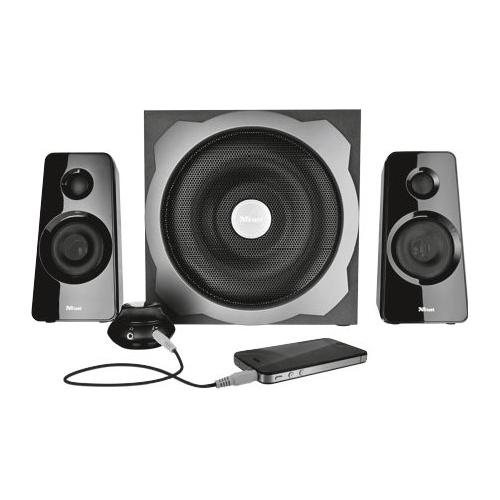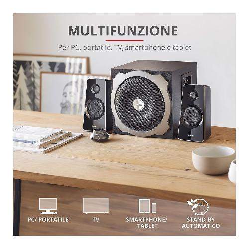 Potente set altoparlanti 2.1 con subwoofer in legno, telecomando e uscita di potenza 60 W RMS (120 W di picco)