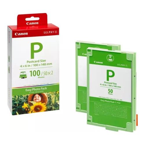 Esclusiva della SELPHY ES Series, la confezione Easy Photo Pack E-P100 consente di stampare fino a 100 immagini senza bordi formato cartolina (3,94' x 5,83'). Nella confezione Easy Photo Pack sono inoltre inclusi inchiostro e carta.