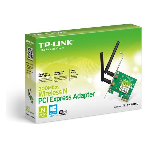 L'adattatore PCI Express 2.0 (x1) Wireless N TL-WN881ND permette di collegare un computer desktop a una rete wireless e l'accesso ad una connessione Internet ad alta velocità. Conforme allo standard IEEE 802.11n offre una velocità wireless fino a 300Mbps, ideale per online gaming e streaming video HD.