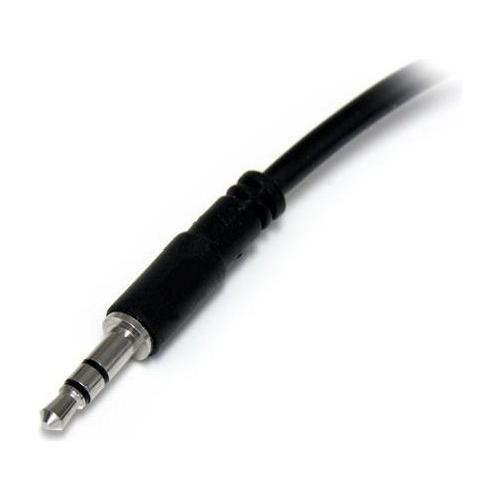 Il cavo splitter/Y stereo slim 3,5 mm MUY1MFFS presenta un connettore maschio 3,5 mm e due connettori audio femmina 3,5 mm per suddividere un singolo jack per auricolare in due.