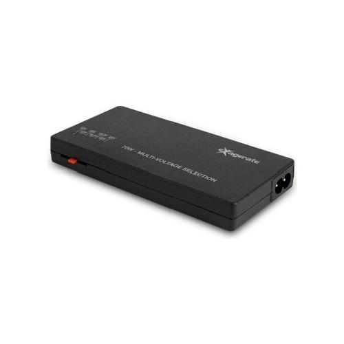 Alimentatore universale ultra compatto per computer portatili con solo 16 millimetri di spessore, utile come ricambio o come alimentatore secondario a casa o in ufficio. Selezione manuale della tensione; Dotato di 9 connettori per le principali marche di Notebook in commercio.