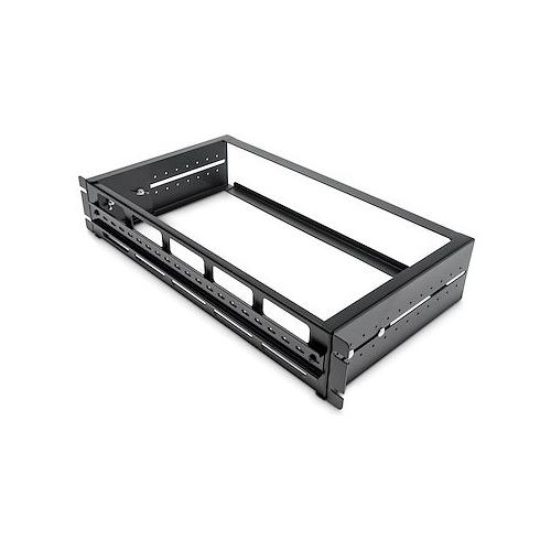 Consente di montare in modo semplice binari di scorrimento DIN su rack standard da 48 cm