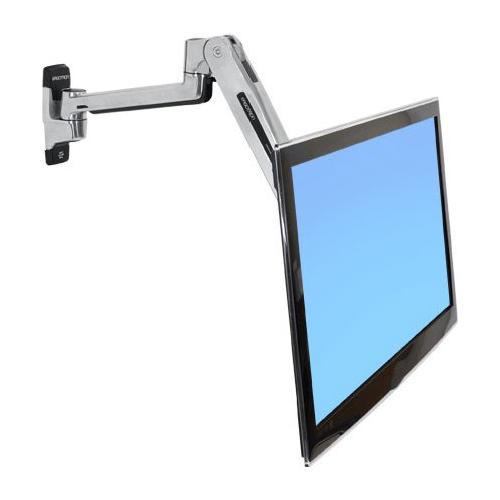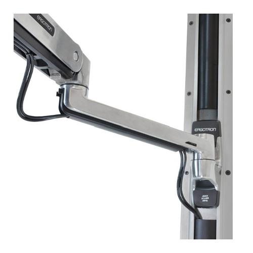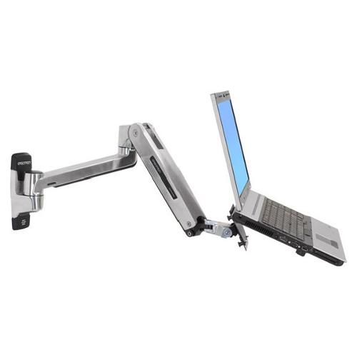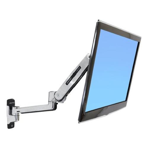 Con il Braccio a parete per posizione seduta/eretta, con LX, si lavora al meglio in entrambe le posture. Il fissaggio a parete rende sempre disponibile la scrivania per il riesame di bozze o le riunioni rapide.