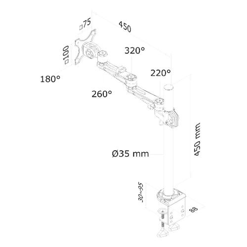Utilizzate un braccio porta monitor per sfruttare pienamente le capacità del vostro schermo. Il braccio è facile da regolare in altezza e profondità. È inoltre possibile inclinare lo schermo in senso verticale, orizzontale e farlo ruotare; questo crea la posizione ergonomica di lavoro ideale riducendo il rischio di mal di schiena e al collo. I cavi possono essere collocati sulla parte inferiore del braccio e su quella verticale del palo.