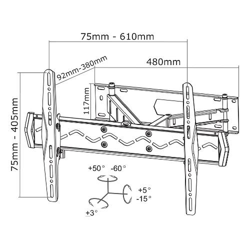 Supporto monitor TV parete ( 50 Kg ) VESA 600 x 400 3 snodi Black LED W560