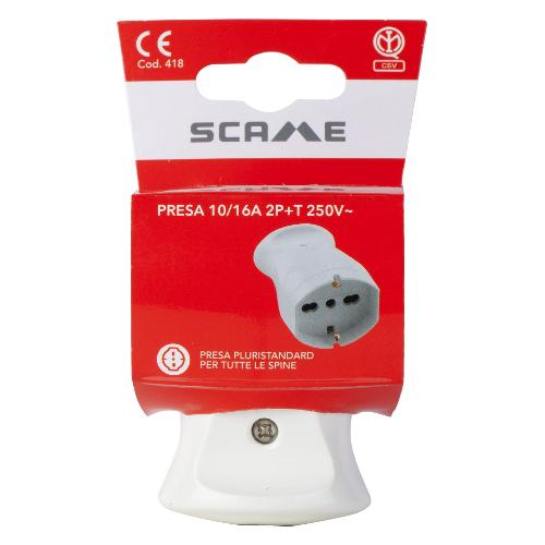 Presa elettrica 2P+T 16A (pluristd italiano e tedesco) per cavo assiale Bianco PP0418R