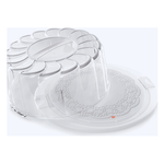 Set composto da vassoio decorato e da campana di protezione con chiusura di sicurezza e maniglia ergonomica. Per conservare, trasportare e servire torte di ogni tipo; con un diametro di 28 cm, e un’altezza di 11 cm.