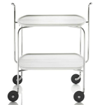 Carrello pieghevole. Struttura in tubo di acciaio cromato, ripiani in polipropilene stampato ad iniezione standard, maniglia in pressofusione di alluminio lucido